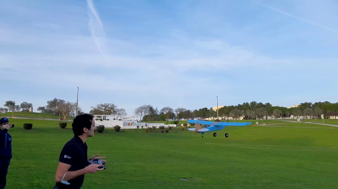 A equipa de pilotagem é constituída por todos os membros do projeto que almejam aprender a telepilotar ou melhorar as suas habilidades de voo, sendo também responsáveis por gravar e fotografar as sessões de voo. Inicialmente, ocorre a familiarização com a perspetiva em 3ª pessoa, a aprendizagem de boas práticas e manobras básicas num simulador de voo, como o Flying Model Simulator. Com algumas horas no simulador já é seguro experimentar aviões treinadores de 3 canais (propulsão, leme de direção e leme de profundidade), estáveis como o Treinador 0 (nota: insesrir um link aqui). Posteriormente, retoma-se ao simulador tendo em vista a prática de manobras num avião de 4 canais (com ailerons) tendo a vista a pilotagem de aviões como o CUB.